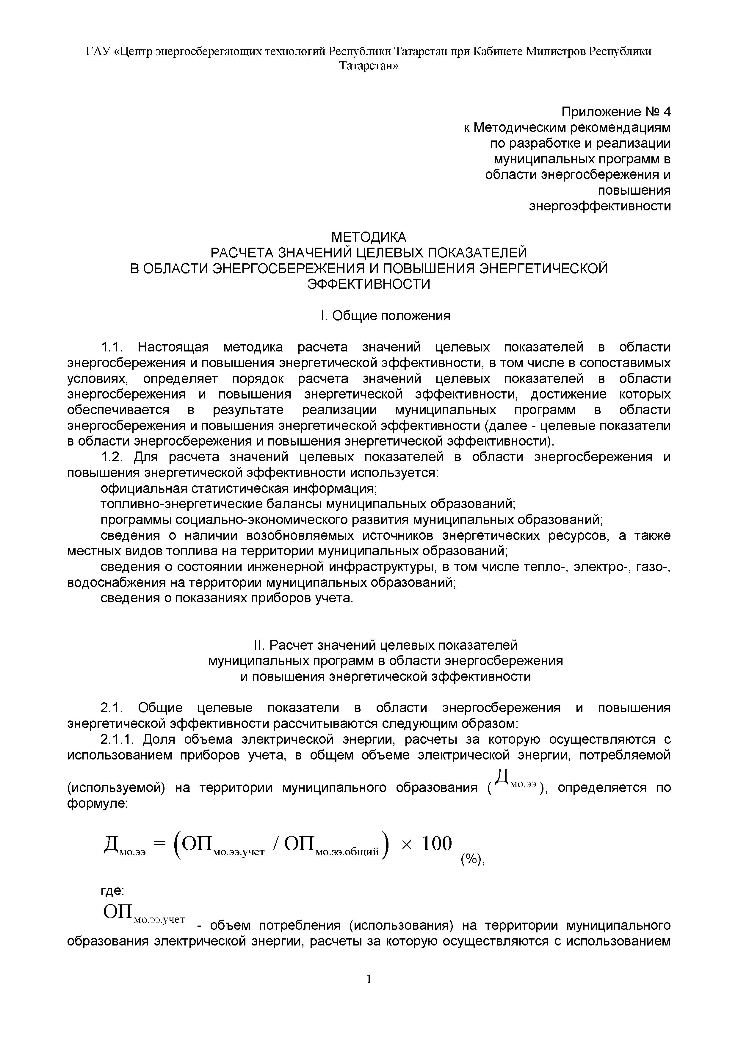Методика расчета значений целевых показателей в области энергосбережения и повышения энергетической эффективности