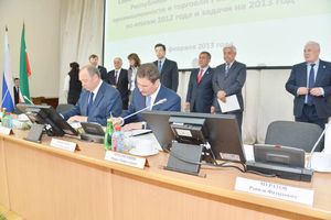 К участникам коллегии с приветственным словом обратился Президент Республики Татарстан Рустам Нургалиевич Минниханов Глава республики охарактеризовал основные показатели экономического развития Татарстана по итогам 2012 года. Так, валовой региональный продукт вырос на 5,5% и составил 1,415 трлн рублей. Объем промышленного производства вырос на 7%, производство нефтепродуктов выросло на 26%, продукции машиностроения – на 27%, металлургической промышленности – на 26%, производство резиновых и пластмассовых изделий – на 11%.