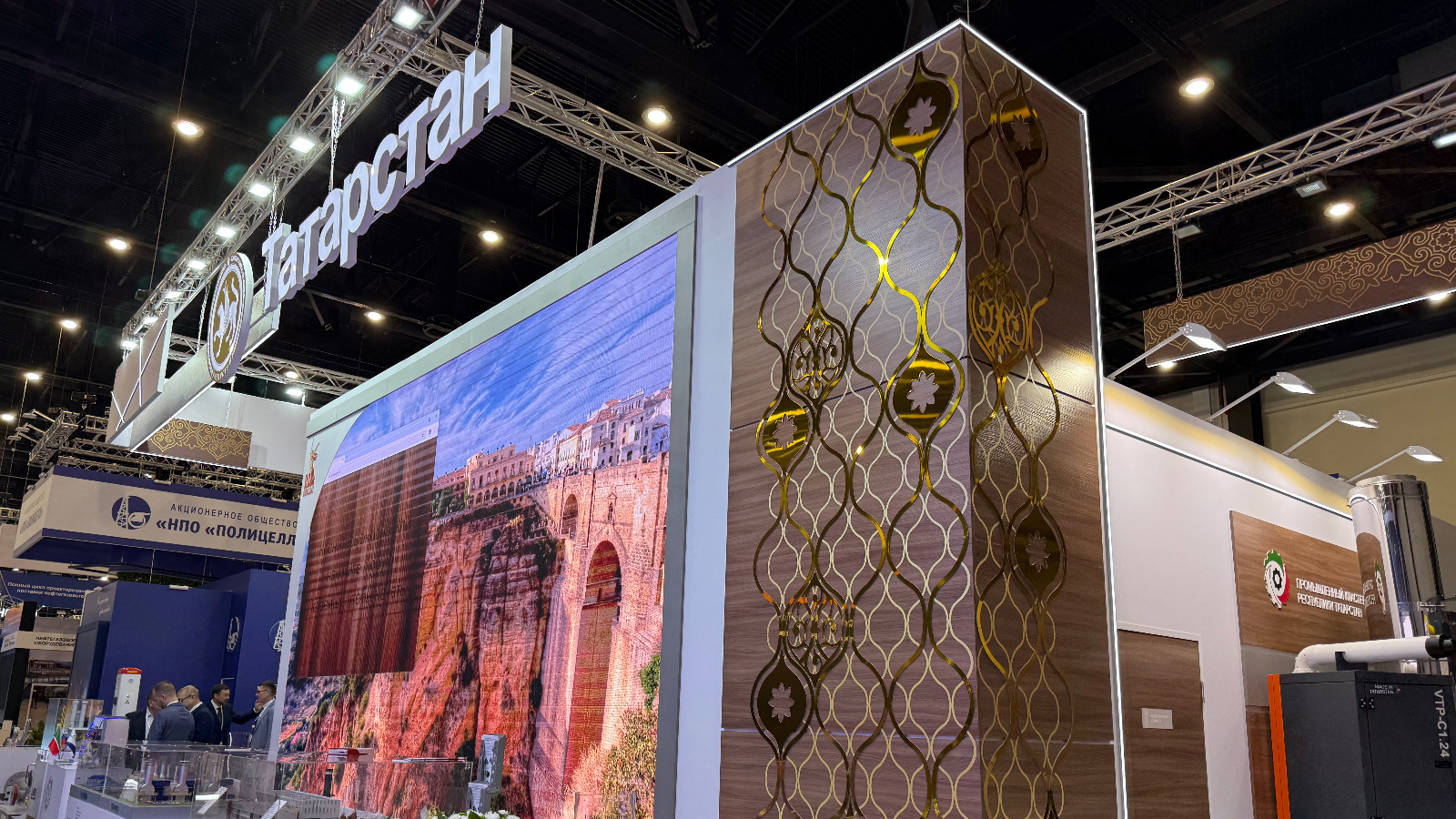 На объединённом стенде в павильоне F свою продукцию и технологии показывают 18 ведущих компаний республики, принимающие участие в реализации стратегических проектов развития, в том числе формировании государственных и региональных программ газификации, энергосбережения, разработки малых месторождений — Аммоний, КМПО, Газпром Трансгаз Казань, Казанькомпрессормаш, Холдинг «Таграс», Техникс, Промэнерго и другие.