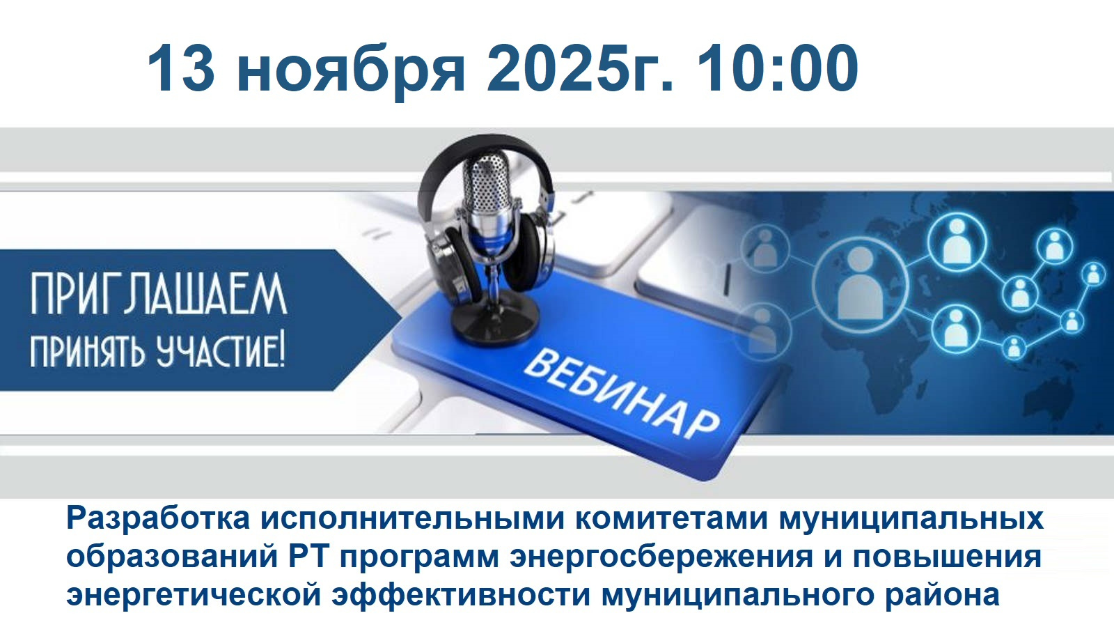 13 ноября 2025г. в 10:00 ГАУ «Центр энергоресурсоэффективных технологий Республики Татарстан» проведет обучающий вебинар на тему: «Разработка исполнительными комитетами муниципальных образований Республики Татарстан программ энергосбережения и повышения энергетической эффективности муниципального района».
