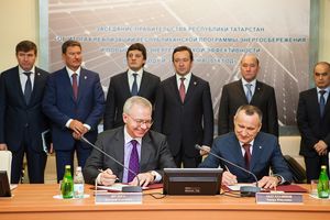С основным докладом о реализации республиканской программы выступил вице-премьер - министр промышленности и торговли Республики Татарстан Равиль Зарипов. Он сообщил, что в 2013 году по федеральной программе энергосбережения освоено 441 млн. рублей субсидий. Софинансирование программы из бюджета республики составило 1,2 млрд. рублей. В минувшем году в республике начата разработка схем теплоснабжения городов и сельских населенных пунктов. Из 30 схем готовы уже 15. В 2014 году, по словам Р.Зарипова, необходимо завершить эту работу. Снижение потребления газа в Татарстане в 2013 году составило 3,2%, теплоэнергии - 1%. По результатам 2013 года энергоемкость ВРП относительно 2007 года снижена более чем на 23%. К 2020 году энергоемкость предстоит снизить еще на 16,6%, в том числе в 2014 году - на 4%. По словам Р.Зарипова, на промышленный сектор приходится 85% потребления первичных энергоресурсов. В среднем в 2013 году на производство продукции на 1 млн рублей в промышленности РТ расходовалось 15 тонн условного топлива - снижение по сравнению с 2012 годом составило 6,2%. Глава Министерства промышленности и торговли РТ доложил о мероприятиях по энергосбережению и повышению энергетической эффективности реализуемых на предприятиях республики. Общие затраты бюджетов всех уровней на оплату энергетических ресурсов в организациях бюджетной сферы составляют в Татарстане около 6,5 млрд. рублей ежегодно. В то же время наблюдается положительная динамика этого показателя. Так, снижение потребления газа на отопление составило 7%.