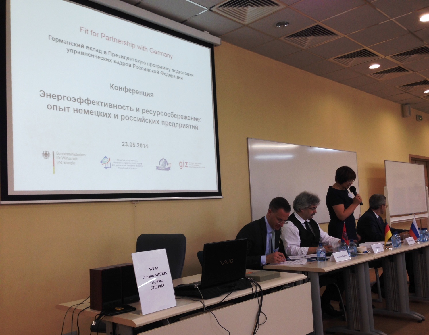 В рамках Германского вклада в Президентскую программу подготовки управленческих кадров Российской федерации 23 мая 2014 года в г.Москва прошла международная конференция «Энергоэффективность и ресурсосбережение: опыт немецких и российских предприятий». Организаторами конференции выступили: Федеральное министерство экономики и энергетики Федеративной Республики Германия, Московское проектное бюро общества GIZ, Комиссия по организации подготовки управленческих кадров для организаций народного хозяйства Российской Федерации.