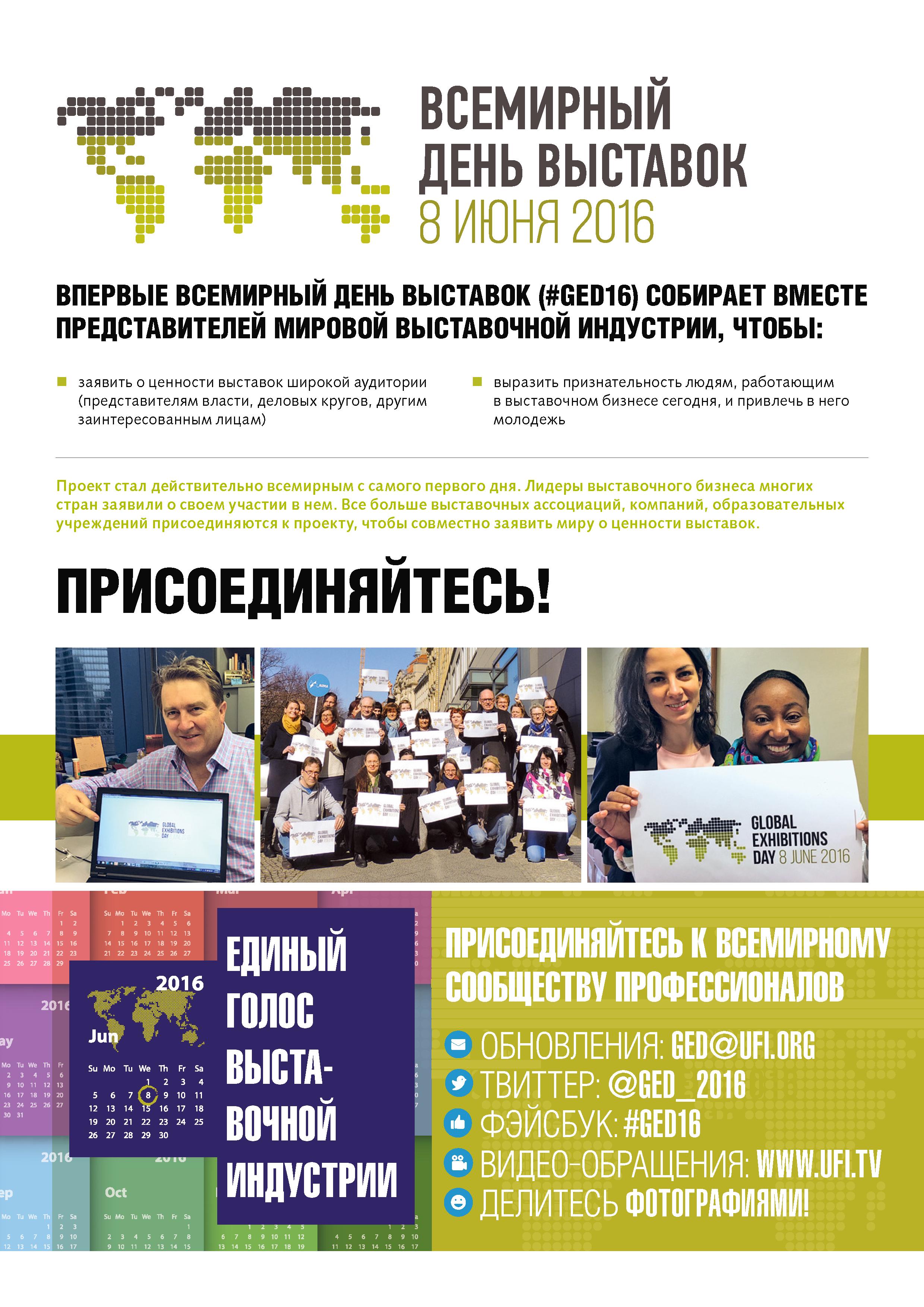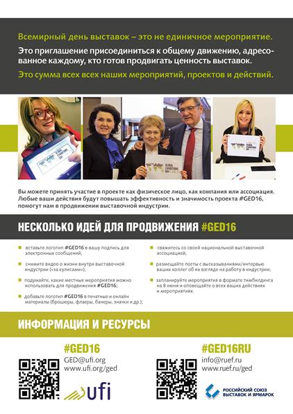 Российским союзом выставок и ярмарок разработана программа продвижения проекта Всемирного дня выставок в России с учетом рекомендаций и материалов UFI.